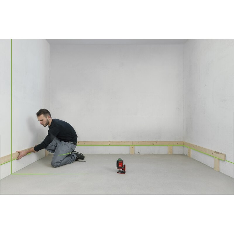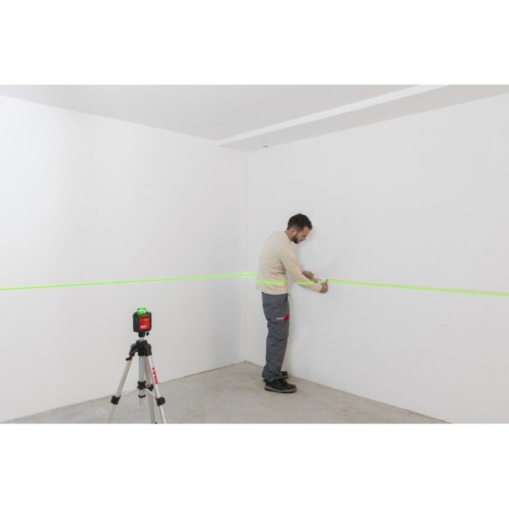 Nivel láser rotativo compacto, ligero y manejable incluso por usuarios no experimentados, con rayo verde para una mejor visibilidad en entornos de alta luminosidad.