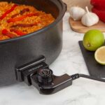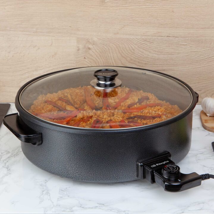 Con la olla paellera pizza-pan, además de preparar paellas, también podrás hacer guisos, asar, freír y cocinar al vapor todo tipo de alimentos. Según sea el menú elegido para ese día tan especial, regulas el nivel de temperatura que llega hasta los 1500 W.