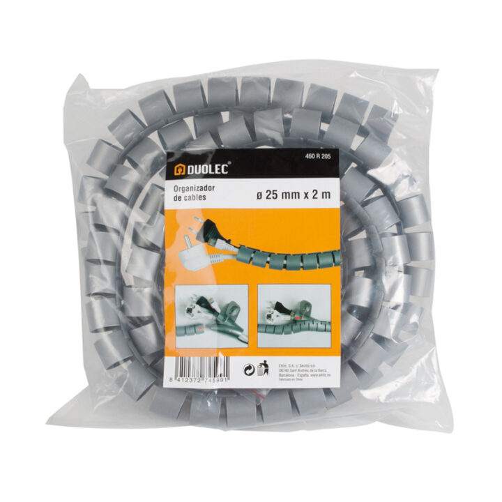 Este organizador es de color gris y se presenta en una bolsa. Tiene unas medidas de 25 mm de diámetro y 2 metros de largo.