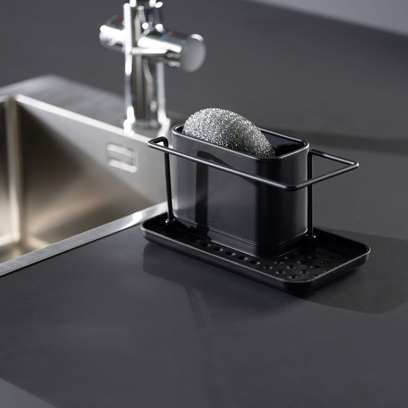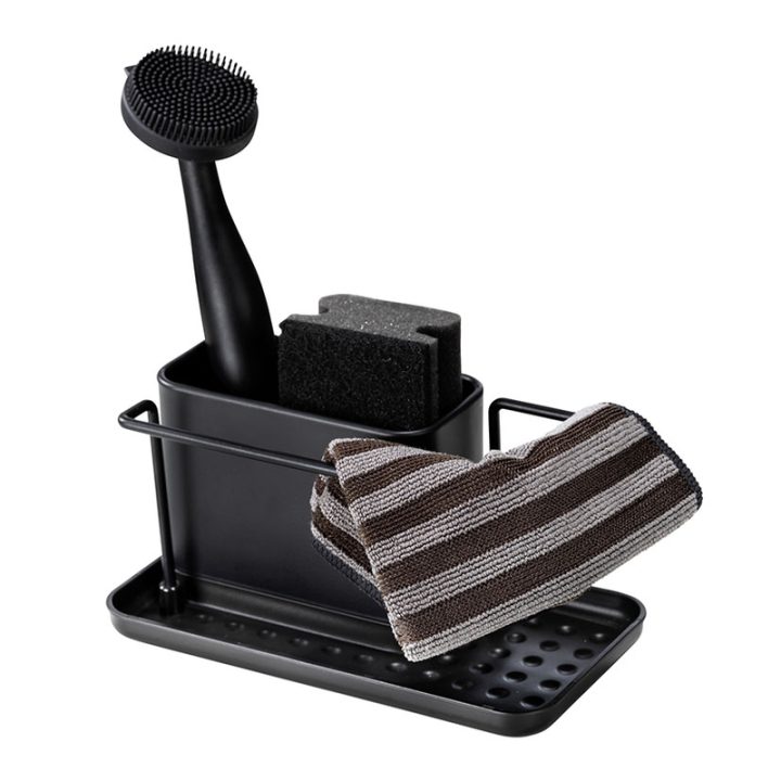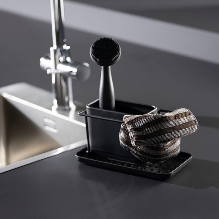 Accesorio funcional y elegante diseñado para mantener el área del fregadero ordenada y tus utensilios de limpieza organizados.
