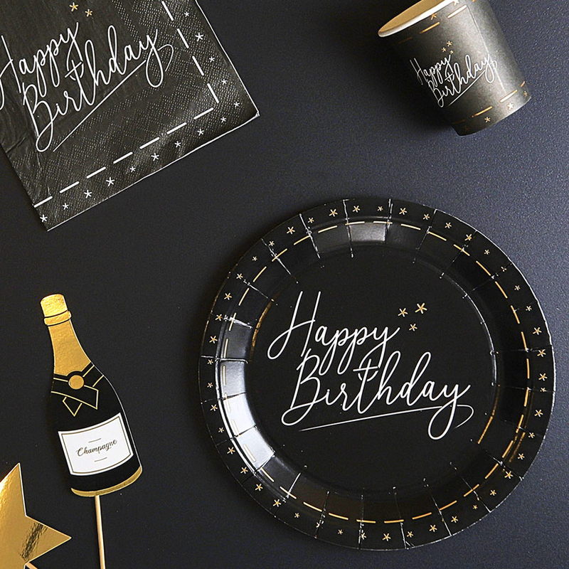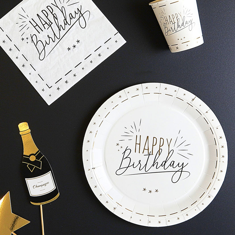 Este pack de servilletas está decorado con las palabras «Happy Birthday». Tiene unas dimensiones de 33×33 cm. Puedes combinarlo con más productos de la misma serie.