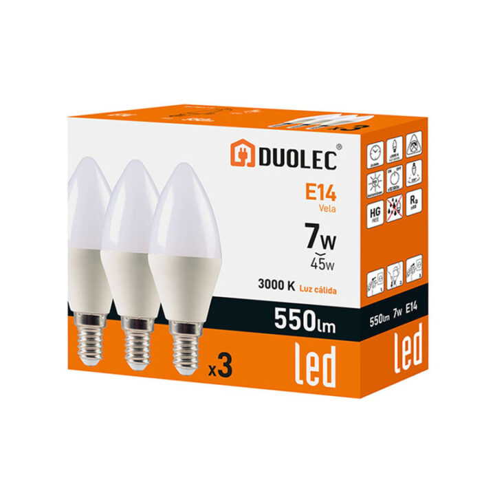 PACK 3 VELA LED DUOLEC 7W 3000K 550LM