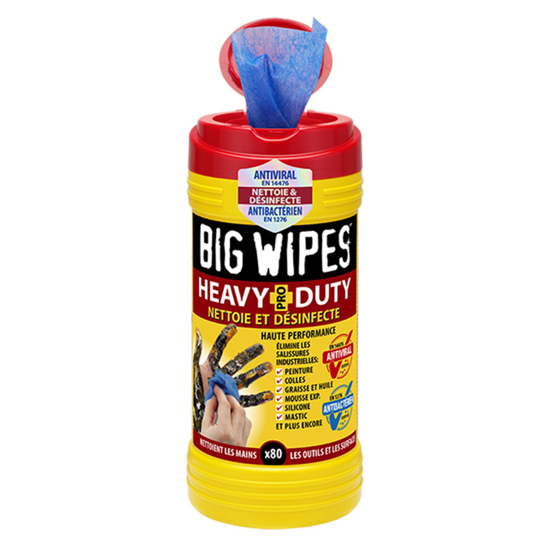 Toallitas desechables sin conservantes ni lejias. Limpian y absorben sin dañar las manos. Limpian pintura adhesivo, espuma de poliuretano, silicona y aceite. Contienen aloe vera y vitamina E. Están testadas dermatológicamente y acorde con la normativa EN1276 y EN14476. Se sirven en un dispensador cilíndrico y cada toallita mide 20×30 cm.