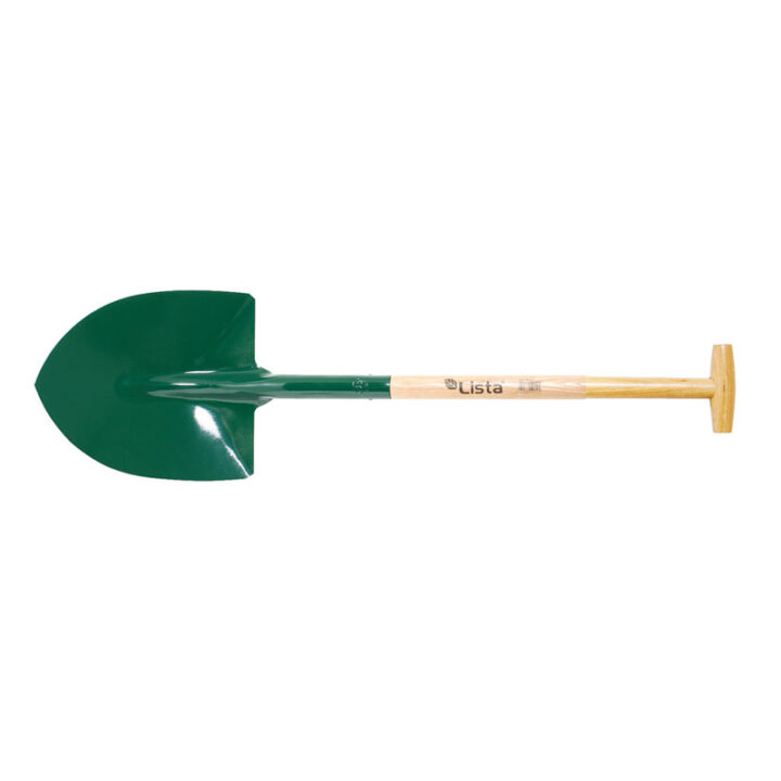Pala de punta de acero templado con mango de muleta en madera de la marca LISTA.