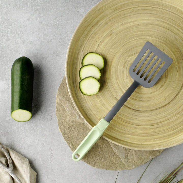 La paleta FACKELMAN de la serie Ecolution está fabricada con materiales renovables fibras de madera y bioplástico en colores discretos en tonos naturales; gris piedra y verde menta. Su mango es ergonómico para un fácil manejo y en el extremo de éste tiene un agujero para que lo puedas colgar en la cocina. La serie Ecolution es apto para el lavavajillas y resistente al calor hasta +270 ºC. Puedes combinarlo con el resto de accesorios para cocina de esta misma serie.