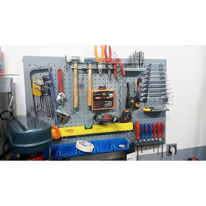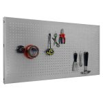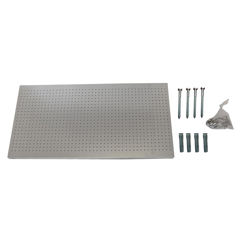 Panel perforado para almacenar herramientas, de color GRIS.Fácilmente insertable en las Estanterías. Necesita ser anclado a la pared. Tiene 1 estante. Sus dimensiones son: 900x400x35 mm. Es fabricado en España y se monta rápido siguiendo las instrucciones.
