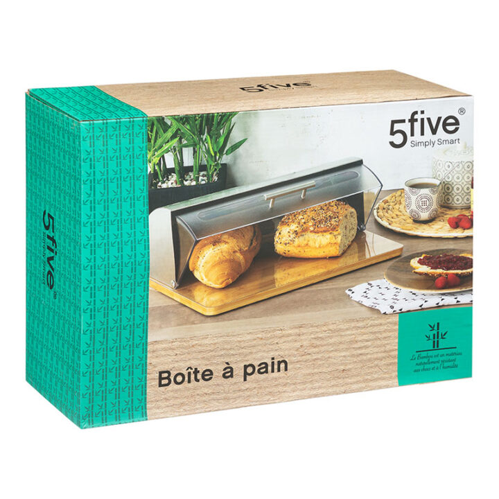 Esta panera está fabricada en bambú y acero inoxidable. Dispone de tapa abatible fabricada en poliestireno transparente que incluye un asa en acero inoxidable para abrir y cerrarla. La panera protegerá de una forma eficaz el contenido contra la pérdida de frescura y evitará la formación del moho. Dispone de un diseño estético moderno y ecológico que combinará fácilmente con cualquier decoración. Es fácil de limpiar, espaciosa y no ocupa mucho espacio.