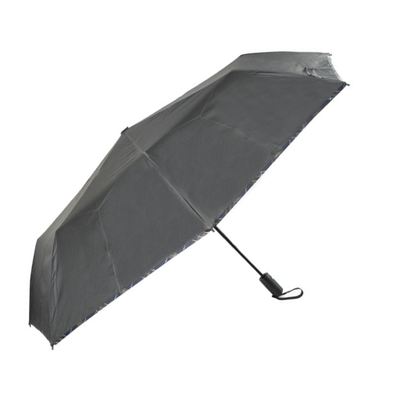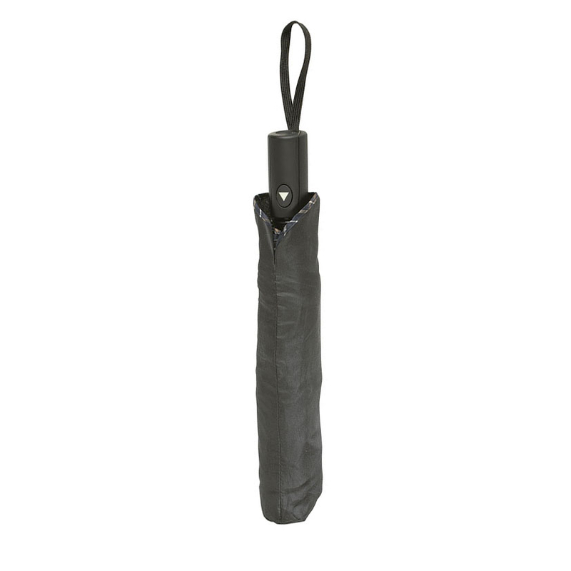 Paraguas automático que se plega en tres dobleces e incorpora una práctica funda para que lo puedas llevar siempre contigo. Dispone de 8 varillas con un eje de acero que hacen que este paraguas sea ligero. Ultrarresistente al agua y al viento. De color negro y se presenta en una bolsa.