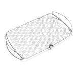 Esta parrilla está fabricada en acero inoxidable. Es doble y flexible para no dañar al pescado. También es ideal para colocar verduras cortadas en rodajas y en diferentes tamaños y cocinarlas fácilmente. Tiene unas dimensiones de 28x45xh.5,6 cm. Es apto para el lavavajillas.
