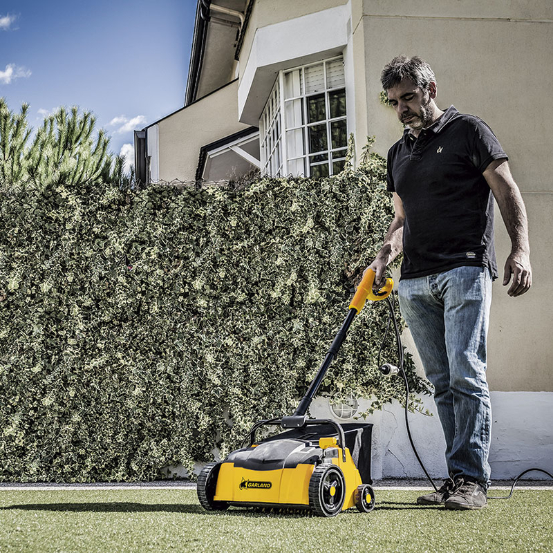 La peinadora Garland hará que cuidar tu jardín te resulte fácil y cómodo. Está recomendado para superficies desde 50 m2 hasta 350 m2. Está diseñada para un perfecto mantenimiento del césped artificial, ayuda a limpiar las hojas, musgo, las agujas de los pinos y otros residuos mientras se peina y levantan las fibras. Dispone de un manillar con brazo oscilante que permite trabajar sin esfuerzo con una sola mano. Podrás ajustar la altura y elegir la intensidad de peinado. Además, indorpora una práctica bolsa de tela de 25 litros de capacidad. Viene presentada en una caja y tiene 2 años de garantía.