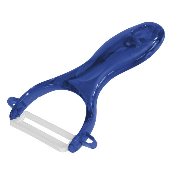 Pelador con cuchilla longitudinal de cerámica ideal para pelar frutas y verduras aprovechando al máximo su alimento.