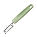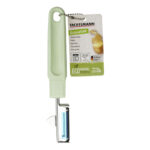 El pelador pendular FACKELMAN de la serie Ecolution tiene la punta cortadora y hoja afilada de acero inoxidable y el mango con materiales renovables fibras de madera y bioplástico en color verde menta. Su mango es ergonómico para un fácil manejo y en el extremo de éste tiene un agujero para que lo puedas colgar en la cocina. La serie Ecolution es apto para el lavavajillas y resistente al calor hasta +270 ºC. Puedes combinarlo con el resto de accesorios para cocina de esta misma serie.