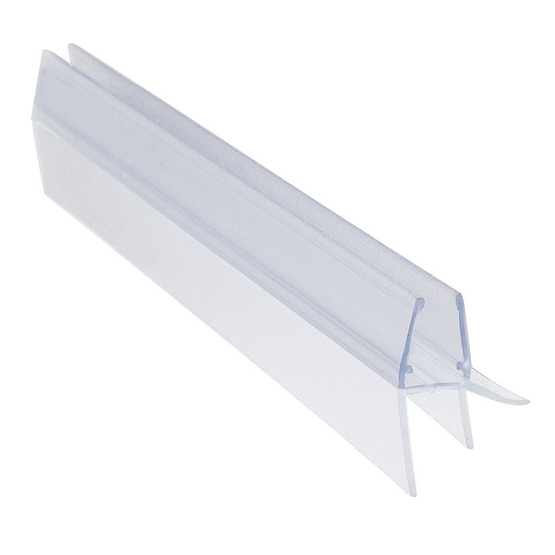 Tiene una longitud de 2 metros. Fabricado en plástico transparente flexible. Para instalar sobre mamparas de cristal de grosor entre 6-8 mm. Se presenta en una caja de 8 unidades.