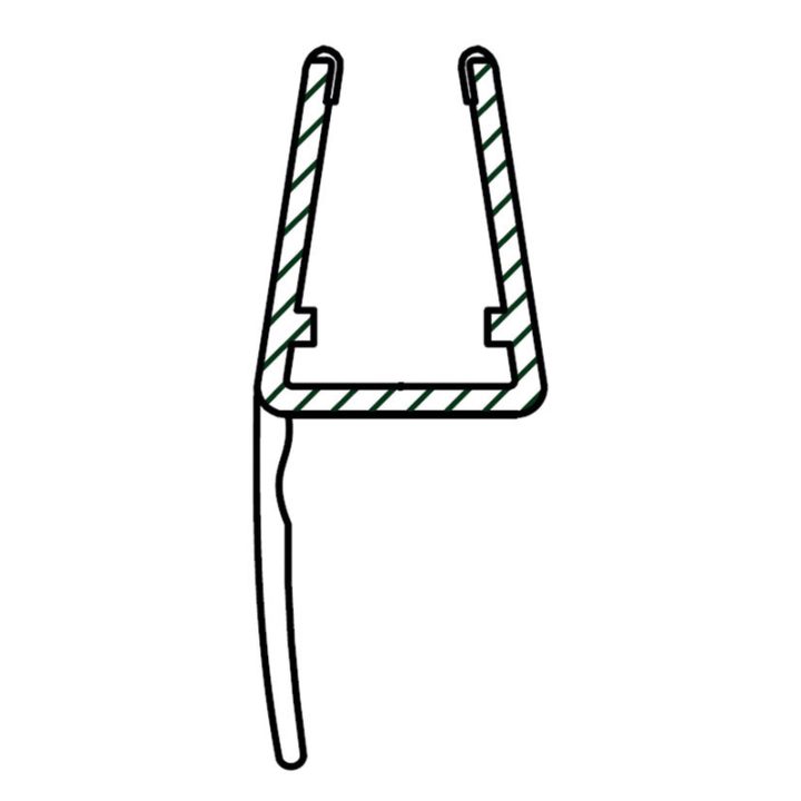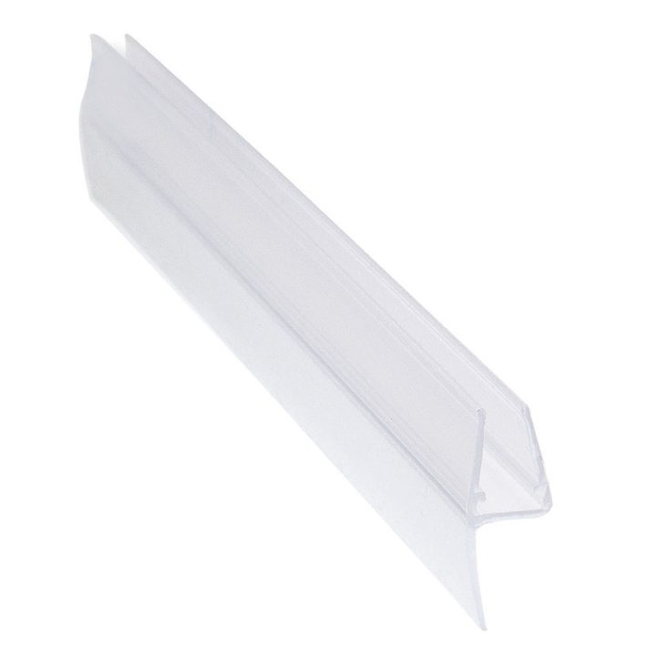 Tiene una longitud de 2 metros. Fabricado en plástico transparente flexible. Para instalar sobre mamparas de cristal de grosor entre 6-8 mm. Se presenta en una caja de 8 unidades.