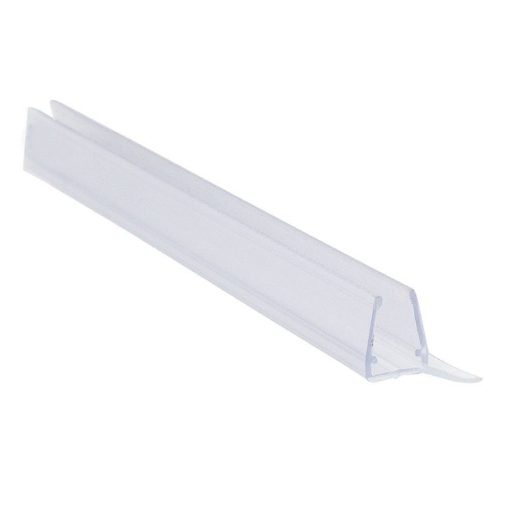 Tiene una longitud de 2 metros. Fabricado en plástico transparente flexible. Para instalar sobre mamparas de cristal de grosor entre 6-8 mm. Se presenta en una caja de 8 unidades.