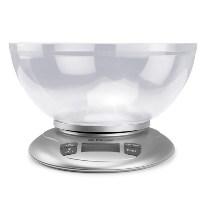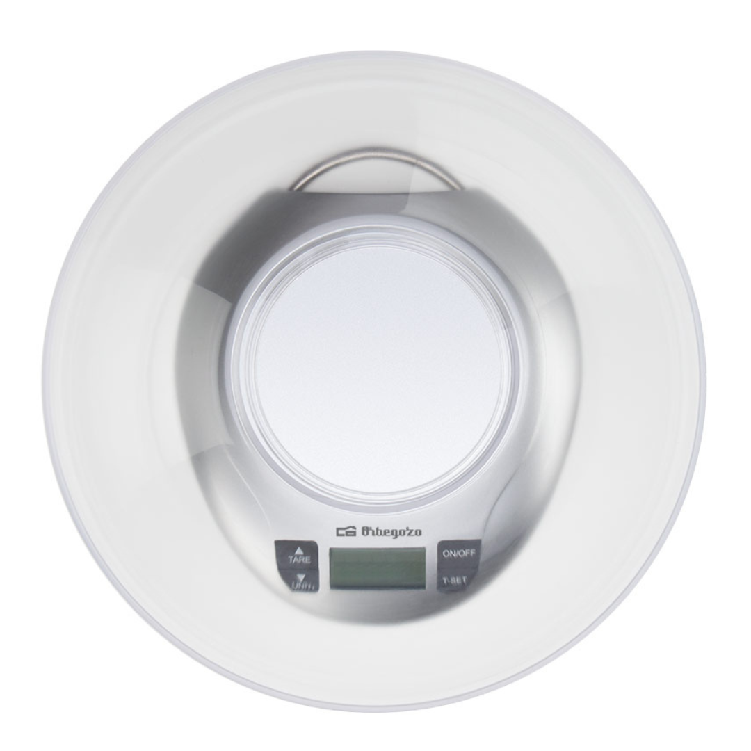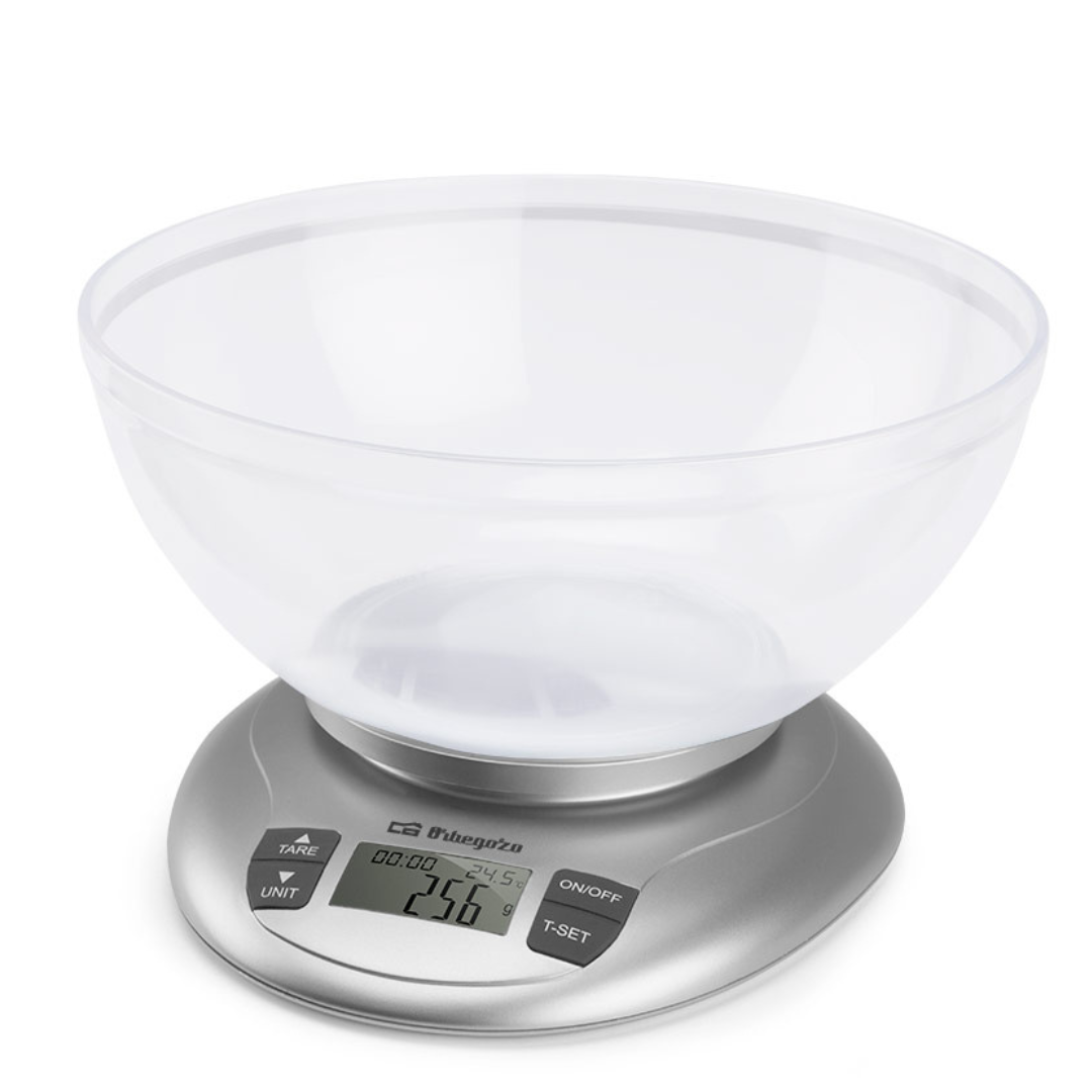 Báscula de cocina Orbegozo PC 2017 con capacidad de 3,5 kg, temporizador con alarma, indicador de temperatura y función tara.
