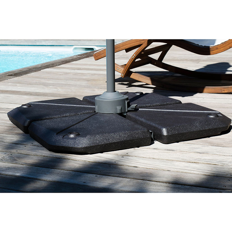 Perfecto para estabilizar y asegurar parasoles en exteriores, proporcionando una base robusta y resistente a condiciones climáticas adversas.