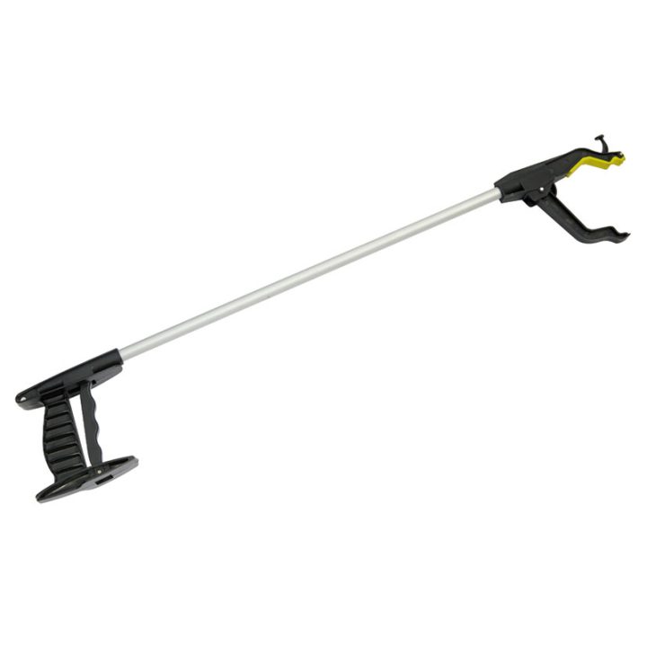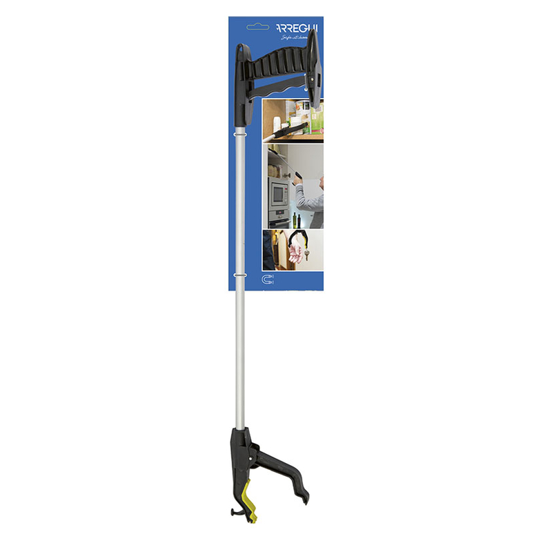 Esta pinza con cabezal giratorio y antideslizante incorpora un imán para recoger pequeños objetos de metal. Así como, recoger objetos del suelo o a distancia sin la necesidad de agacharse y con un peso máximo de 1 Kg. Se presenta en un blíster.
