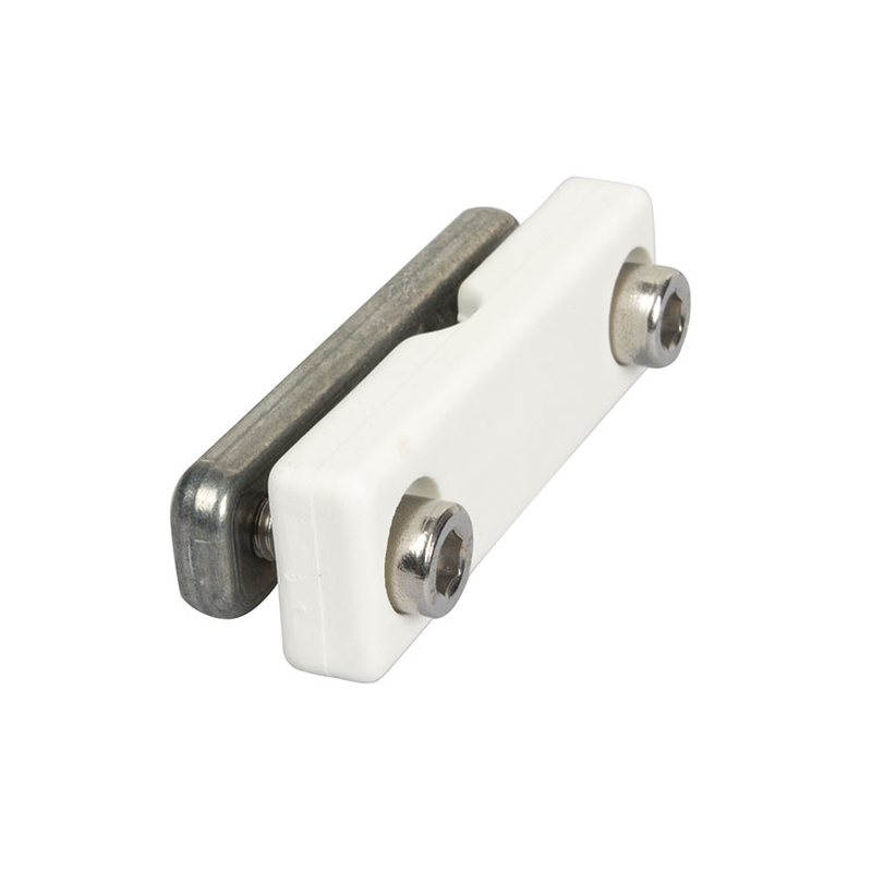 Este pisacuerda está fabricado en Zamak color blanco, tiene unas medidas de 65x20x15,7 mm. Se instala siempre en el primer perfil. Incluye 1 pletina, 1 pisacuerda y 2 tornillos. Se presenta en una bolsa. Puedes consultar la ficha y el croquis que tenemos colgado en nuestra web.