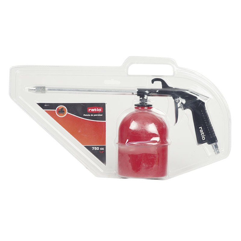 El pulverizador está diseñado para proyectar el producto en redondo y lograr así una limpieza excelente. Incorpora un depósito inferior con una capacidad de 750 cc y un enchufe rápido de 1/4″. En general, resulta una pistola fácil de usar, colgar y controlar. Se presenta en un doble blíster.