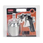 Esta práctica pistola de pintar de RATIO incorpora un depósito inferior, enchufe rápido 1/4″ y boquilla graduable. Entre sus principales características técnicas, destacan las siguientes: