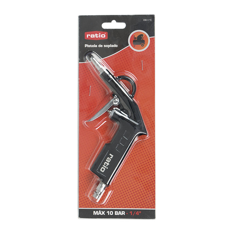La versátil pistola de soplar RATIO ofrece múltiples aplicaciones en el trabajo, en el coche o en casa. Cuenta con un enchufe rápido 1/4″ y destaca la presión máxima de trabajo de 10 Bar. Se presenta en un doble blíster.º