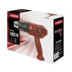 Este modelo de RATIO está equipado por un motor de 1800W con protección contra sobrecalentamiento. Dispone de 3 temperaturas: el nivel 1, ajuste de aire frío, es el idóneo para enfriar una pieza calentada previamente o para secar pintura. También es idóneo para enfriar la máquina antes de devolverla a su maletín o antes de cambiar las boquillas. El nivel 2 es el adecuado para doblar y soldar plásticos. El nivel 3 es idóneo para retirar pintura o para descongelar tuberías. Consta también de empuñadura bimaterial y maletín de transporte con 5 accesorios. Se presenta en una caja y tiene 3 años de garantía.