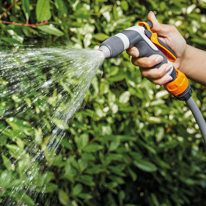 La pistola de riego LISTA WaterCycle Metal 22 combina durabilidad y comodidad en un diseño robusto y funcional. Con su cuerpo metálico y componentes soft touch, garantizan un agarre cómodo y seguro incluso con las manos mojadas. Hasta 12 litros por minuto, eficiente para cubrir áreas de riego medianas y grandes. Óptima a 4 bares para un rendimiento constante y fiable. Dispone de un interruptor de flujo plano para un control fácil y preciso del flujo de agua. Riego regulable: ajusta el chorro desde un flujo directo a una lluvia fina, adaptándose a diversas necesidades.