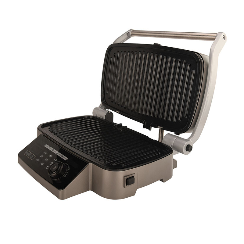 Grill multiusos para una cocina saludable y preparación de bocadillos sándwiches, carnes pescados y verduras.
