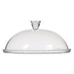 El plato y la tapa están fabricados en cristal transparente de alta calidad. La tapa dispone de una asa cómoda que permite mantener la frescura de los alimentos. El plato tiene unas dimensiones de ø32xh.1,5cm y la tapa ø32xh.15cm.
