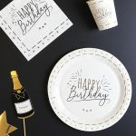 Estos platos están fabricados en carton y cada plato tiene impreso las palabras » Happy Birthday». Puedes completar estos platos con vasos y servilletas de la misma gama. Se sirven en packs de 6 unidades en colores surtidos blanco o negro.