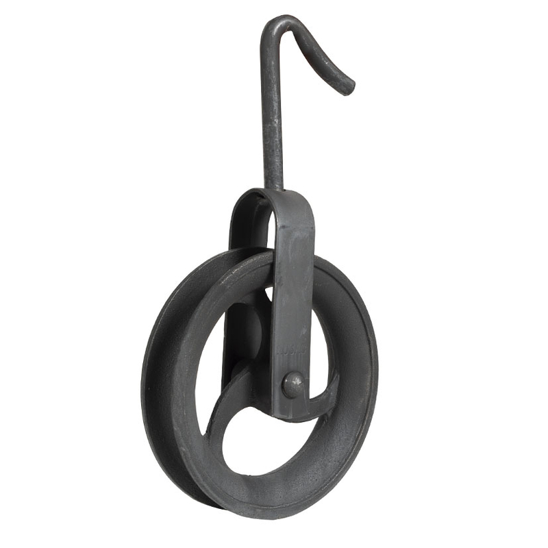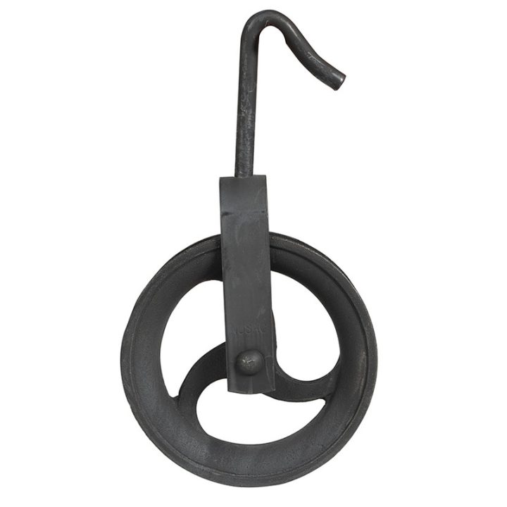Está polea para pozo está fabricada en hierro fundido y tiene una montura estampada. No icluye guarda.
