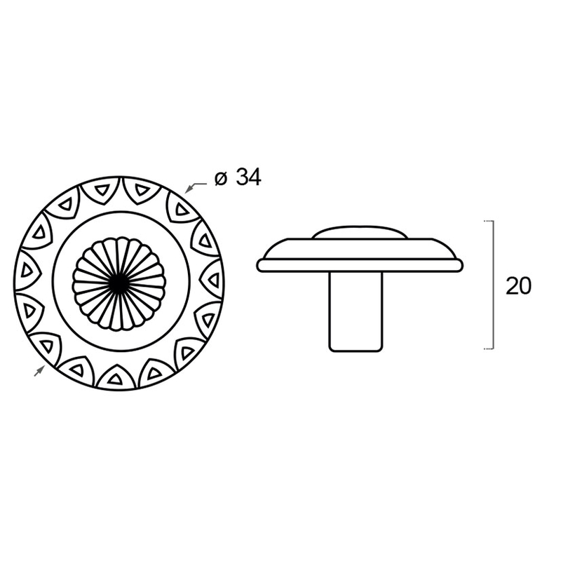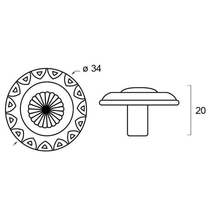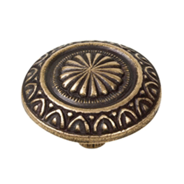 Este Tirador está fabricado en zamac con undiámetro de 34 mm y un acabado en cuero viejo. Indicado principalmente para instalar en cajones. Se presenta en una bolsa.