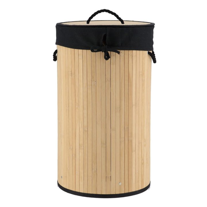 Este pongotodo es de gran versatilidad. Su diseño en bambú le dará un toque exótico y natural a tu hogar. Se suele utilizar en la colada, para mejorar la movilidad de las prendas. Incorpora en el interior un forro de lino en color negro y en los laterales un asa textil para que lo puedas transportar fácilmente. Además, de una tapa con su asa correspondiente. Lo podrás plegar cuando no lo utilices. Tiene unas medidas de ø36xh.61 cm (con tapa). Lo puedes combinar con el resto de accesorios para baño de Bambú que tenemos en nuestra web.
