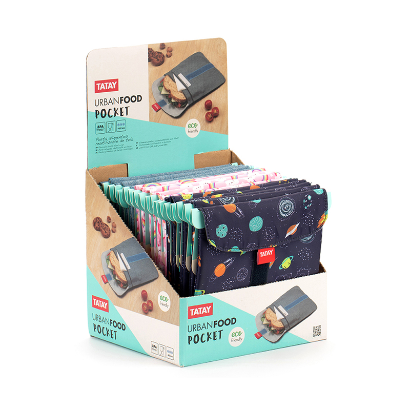 Es un producto ideal para envolver bocadillos, frutas, galletas, etc olvidándote del film transparente y del papel de plata. El portabocatas es reutilizable de tela 100% poliéster, libre de BPA. Es apto para lavavajillas y congelador.