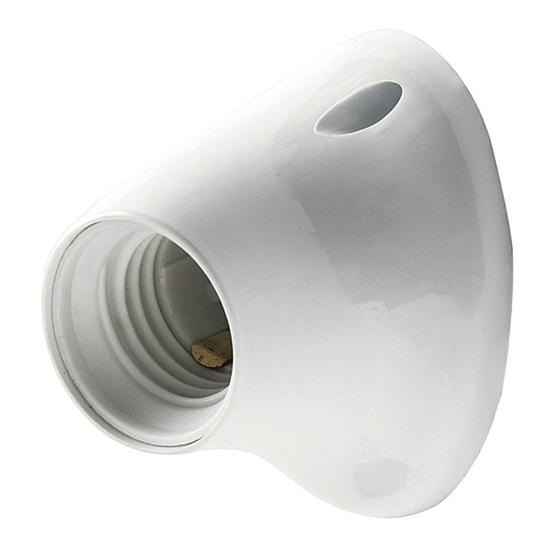 Está fabricado en plástico y es de color blanco. Posee una rosca E-27 4 amperios y 250 voltios.