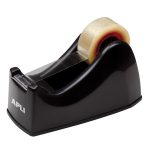 Este portarollos tiene el cuerpo de plástico en color negro y se adapta a rollos de 33 metros de longitud y 19 mm de anchura. No incluye cinta adhesiva y viene presentado en una caja.