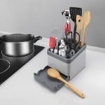 Accesorio de cocina diseñado para organizar y almacenar diversos utensilios.