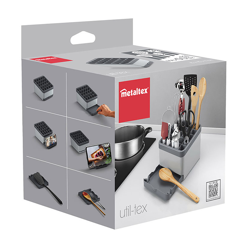 El Portautensilios de Cocina METALTEX Util-Tex, fabricado con plástico ABS, ofrece durabilidad y resistencia. Su característica principal es la personalización, permitiendo ajustar la cantidad de huecos hasta un máximo de 25, lo que proporciona una solución adaptable a diferentes necesidades de almacenamiento. Además, cuenta con un cajón inferior deslizante de doble uso, que puede servir tanto como reposautensilios como soporte para móvil, añadiendo versatilidad al diseño. Sus dimensiones compactas de 15x15xh.11 cm lo hacen adecuado para cualquier espacio de cocina, manteniendo los utensilios organizados y al alcance de la mano.