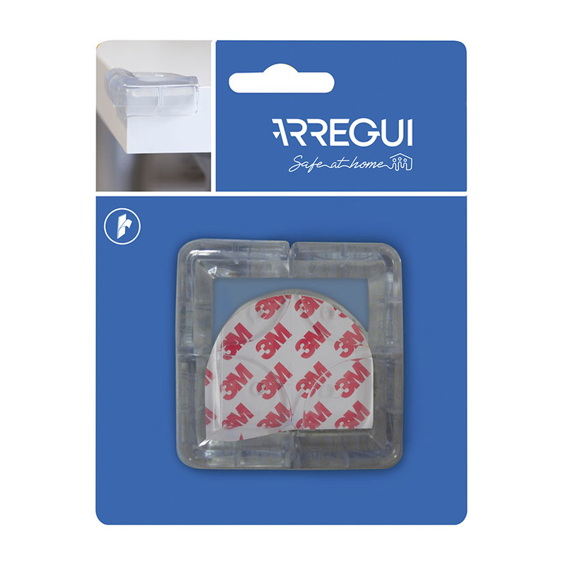 Este protector se adapta a todo tipo de esquinas. es transparente y se fija mediante adhesivo 3M. Viene presentado en un blíster de 4 unidades.