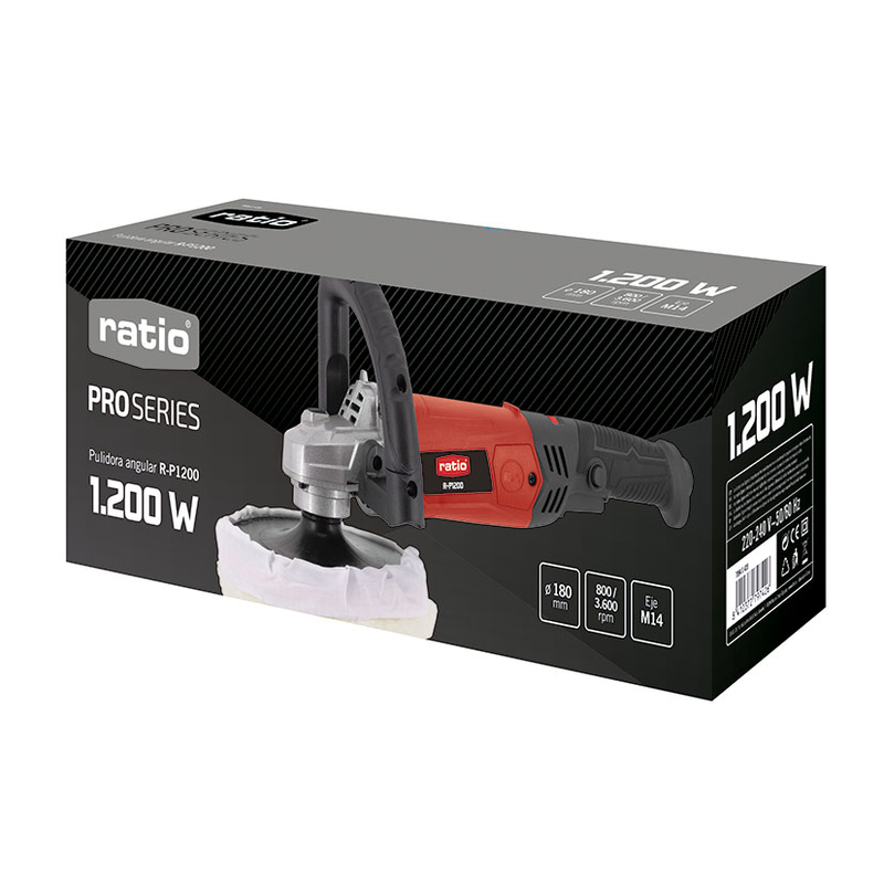 La pulidora RATIO ProSeries R-P1200 está equipada por un potente motor de 1200W con un sistema electrónico de velocidad constante bajo carga, un sistema de cambio de escobillas externo, empuñadura bimaterial para un cómodo agarre y manejo de la herramienta. Además, incluye un mango auxiliar, boina de pulido y escobillas de recambio. Viene presentada en una caja.