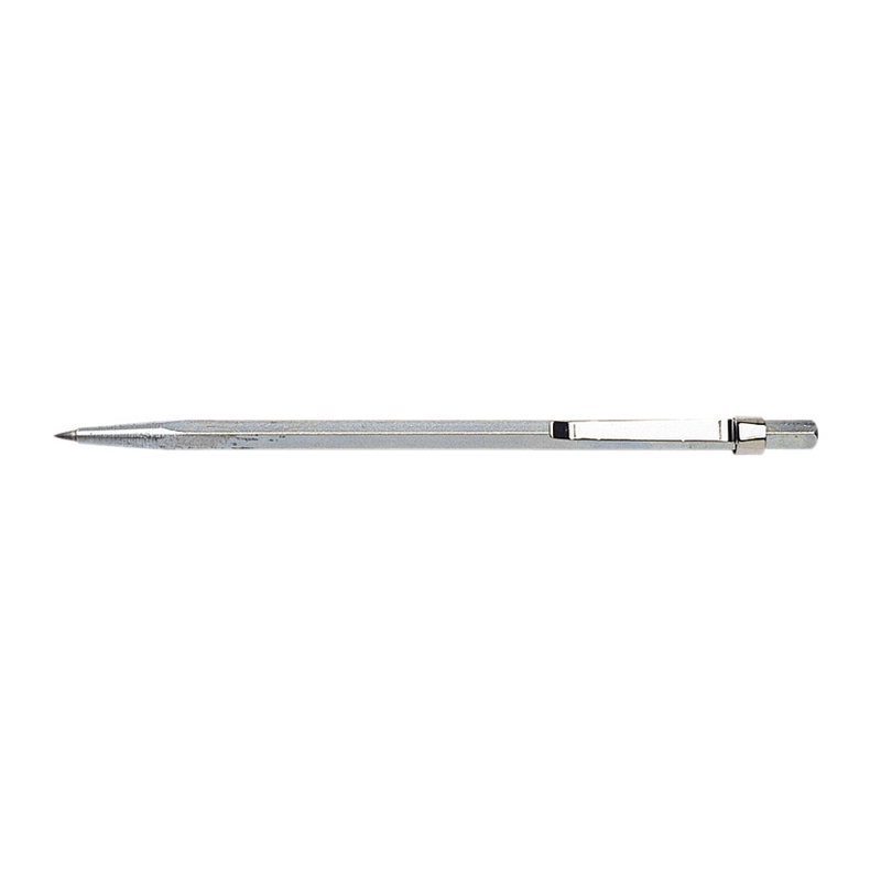 Punta de trazado de carburo de tungsteno con el cuerpo hexagonal. LLeva incorporado un clip de sujeción para tenerlo siempre a mano. Se presenta en una bolsa.