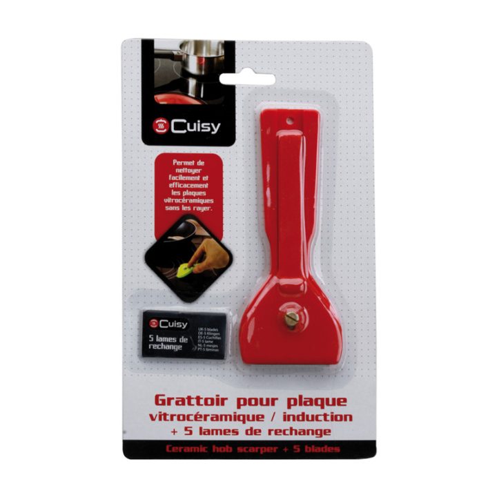La rasqueta te ayudará a eliminar fácilmente los restos de suciedad e impurezas de la vitrocerámica o superficies de vidrio. Esta rasqueta incluye cinco cuchillas de recambio. Viene presentado en blíster y está disponible en colores surtidos.