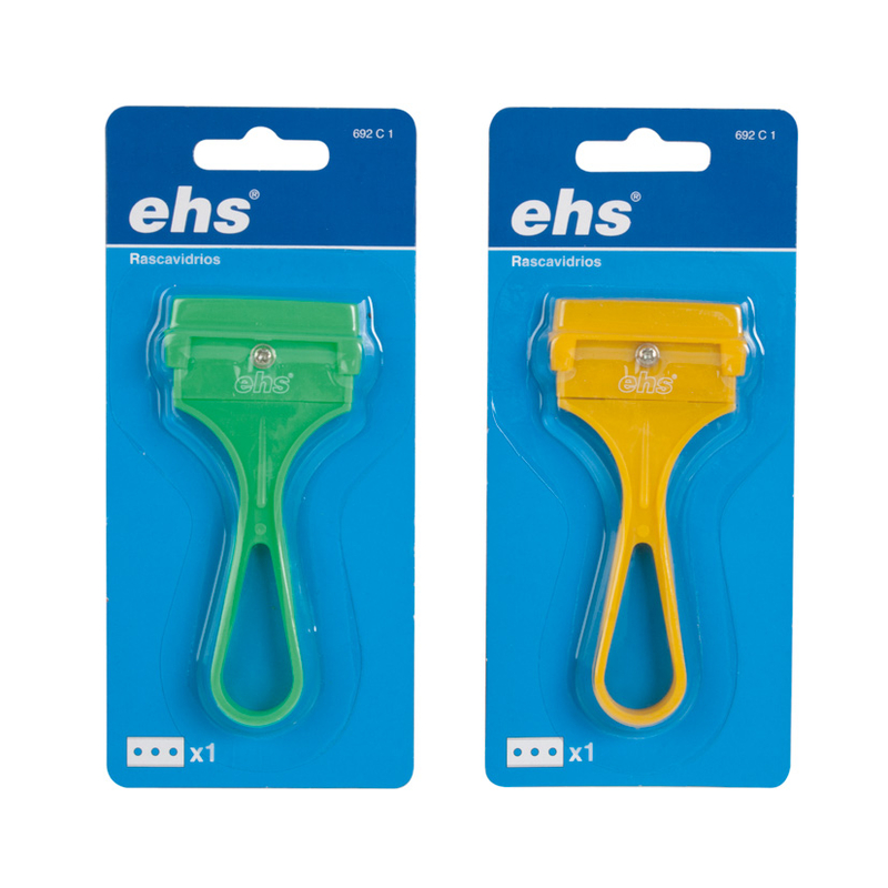 Este rascavidrios cuenta con cuerpo de plástico y una cuchilla plana afilada para un trabajo eficaz. Se presenta en un blíster de colores surtidos.