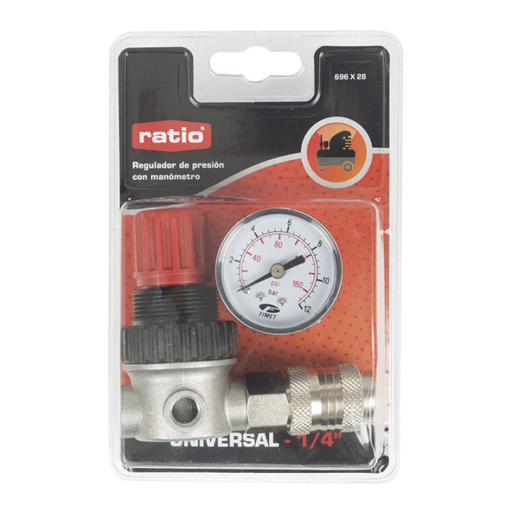 Incluye manómetro de doble escala PSI/Bar. Se presenta en un doble blíster.