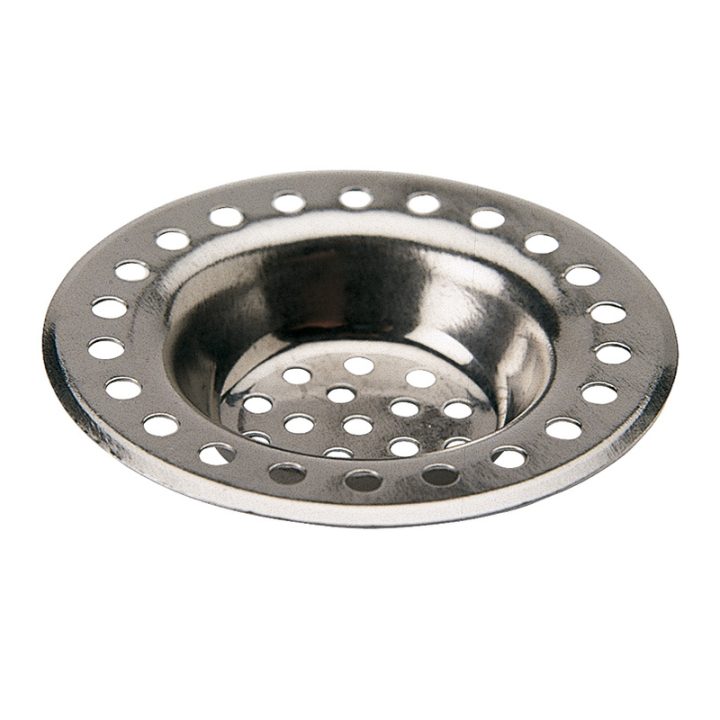 Rejillas con filtro para desagüe de lavabo y fregadero acabado en acero inoxidable. Se presenta en un envase de 25 unidades.