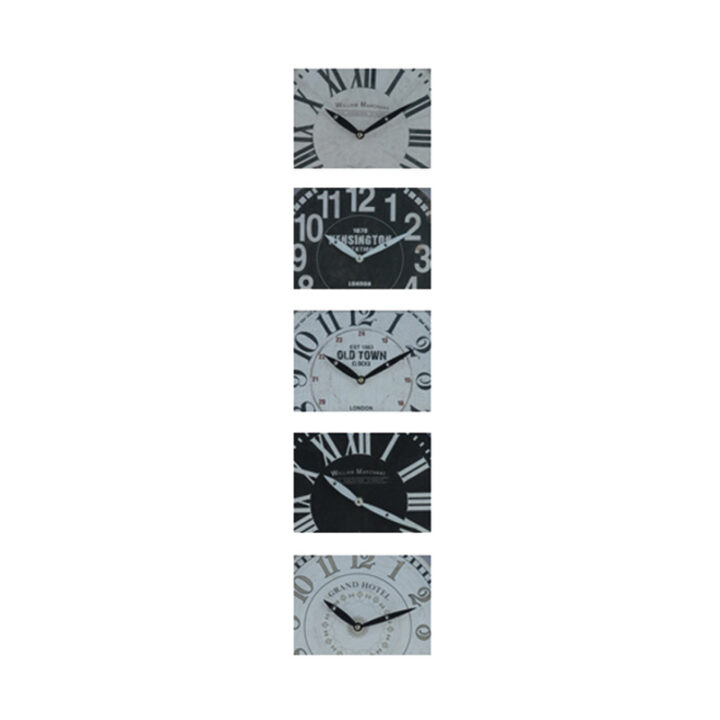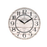 Este reloj es analógico tiene un diámetro de 28 cm y emula a los relojes antiguos de las estaciones de tren en Londres. Está disponible en modelos surtidos. Viene presentado en una bolsa.