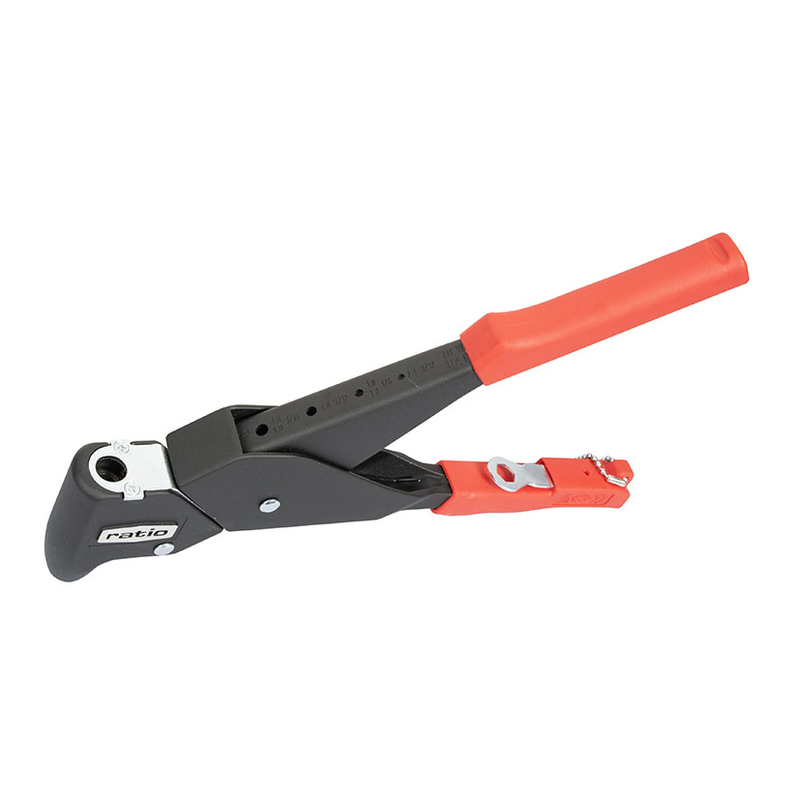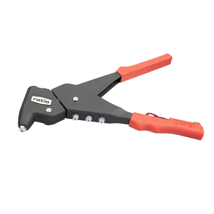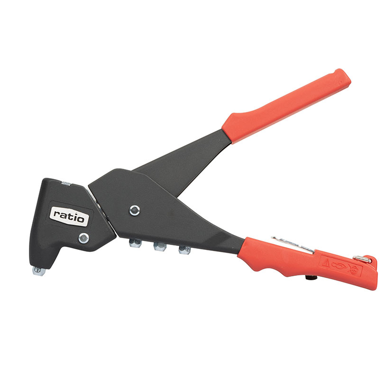 Esta remachadora manual profesional tiene el cuerpo y el cabezal en aluminio de alta resistencia. El mango superior es de acero de gran resistencia y las empuñadoras de plástico sin HAP (no tóxicas para la piel de tus manos. Está equipada por 4 boquillas intercambiables con marca de tamaño (ø 2.4/ 3.2/ 4.0/ 4.8 mm). Podrás utilizar remaches de aluminio de acero y de acero inoxidable: