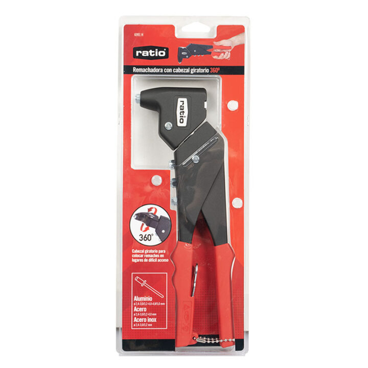 Con cabezal giratorio 360º para colocar remaches en cualquier ángulo en los lugares de dificil acceso.
