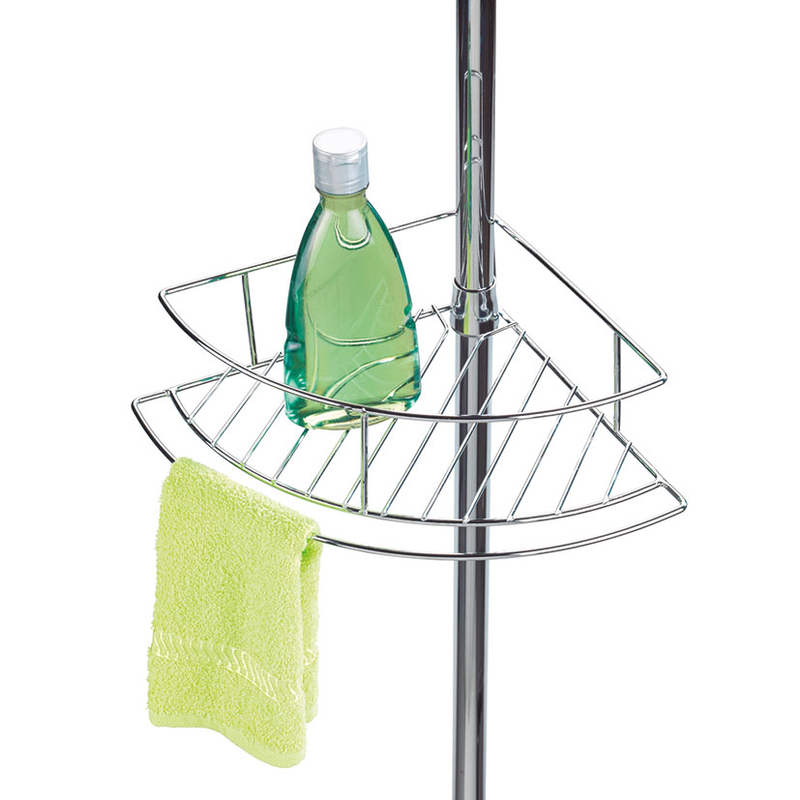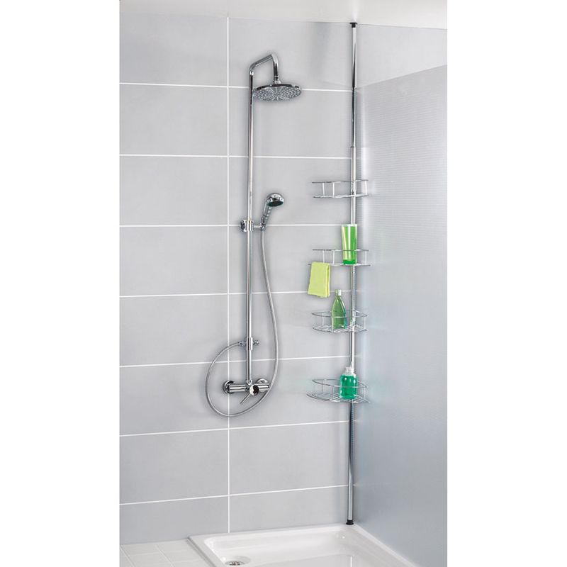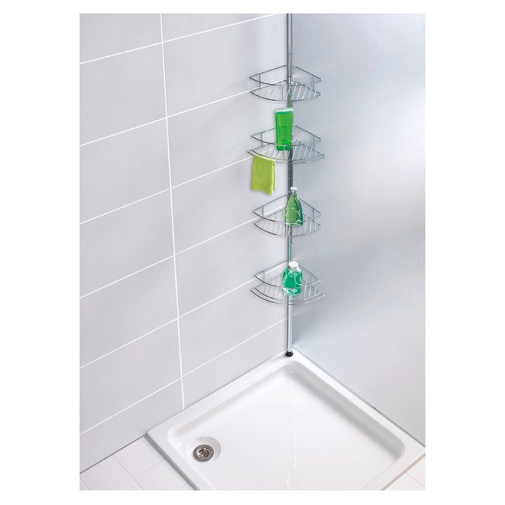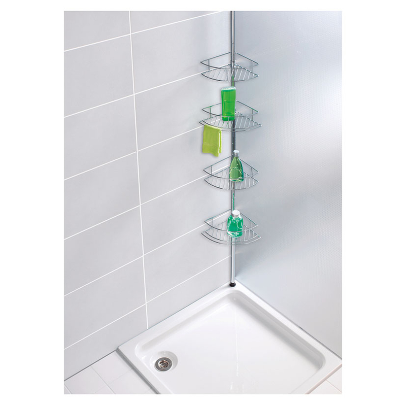 Esta rinconera es adaptable a cualquier tipo de ducha y cuarto de baño. Está fabricada en acero inoxidable e incorpora 2 cestas de alambre, 2 cestas de alambre para que puedas colgar trapos y 1 barra telescópica. Tiene unas dimensiones de 31x23xh. 65/275 cm.